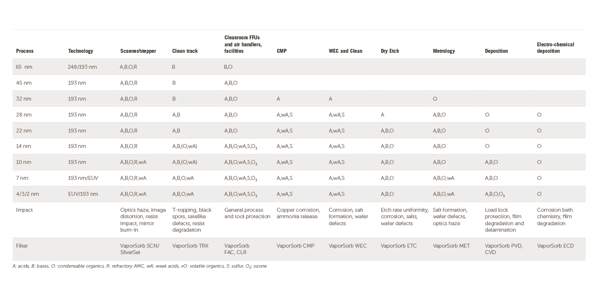 Today's fabs are manufacturing in cleaner environments as advanced processes are more AMC sensitive and there is a greater awareness of AMC impact. Early AMC concerns focused on few molecules only, at the ppm level. Over time, and particularly with 193 nm technology, more and more chemicals cause concerns, and with the advent of 14 to 7 nm critical dimensions, most gas-phase compounds can be a concern in certain process steps.